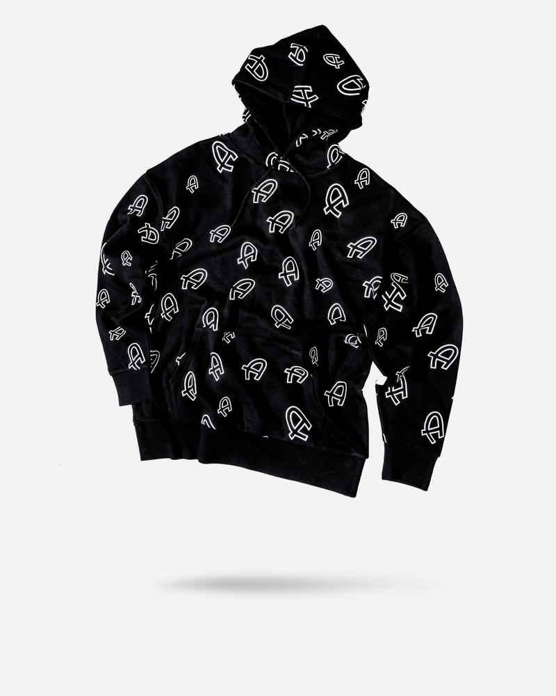 هودي بشعار Adam's مطبوع حسب الطلب بالكامل مع شعار "A" مطبوع من الأمام والخلف.