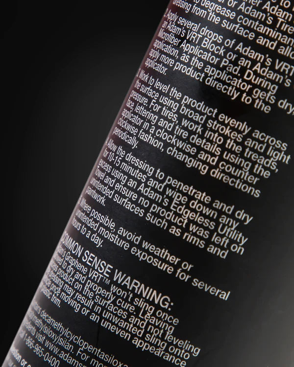 Graphene VRT™ هو تطور جديد لمنتجنا المفضل! صُمم Graphene VRT™ لتغميق وترميم وحماية الفينيل والمطاط والإطارات باستخدام بوليمرات سيليكون متنوعة ومزيج من الراتنجات القابلة للمعالجة، مما يحمي من أضرار الأشعة فوق البنفسجية والأكسدة، دون القلق من التلف.