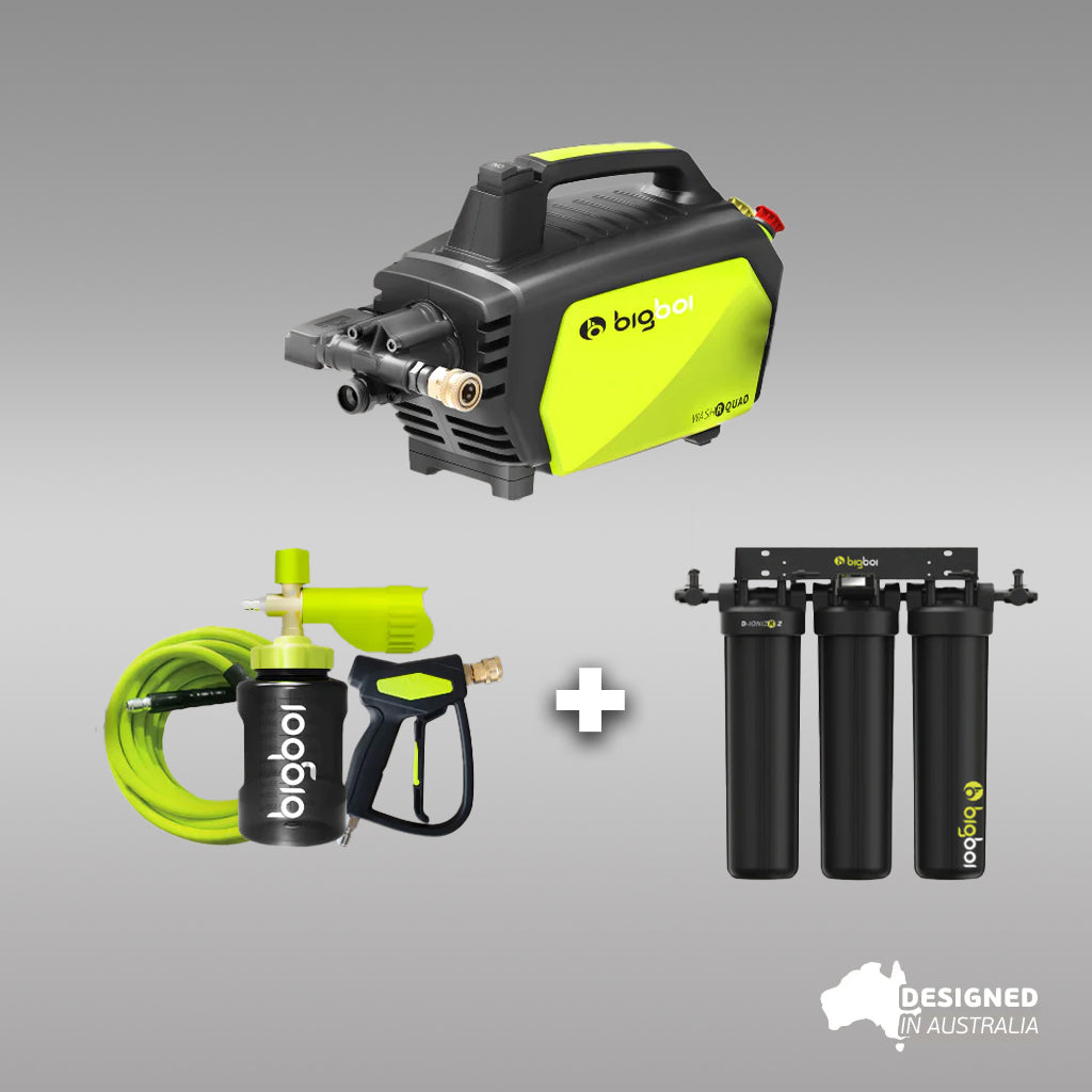 The WASHR QUAD + D-IONIZR (2 Set) Bundle is designed for professional detailers and serious car care enthusiasts who need high performance, efficiency, and consistent spot-free results. This bundle combines the multi-output WASHR QUAD system with two D-IONIZR resin sets, giving you powerful foam distribution along with extended deionized rinsing capacity for longer working sessions and reduced downtime. Ideal for detailing studios, mobile detailers, and premium home garages.